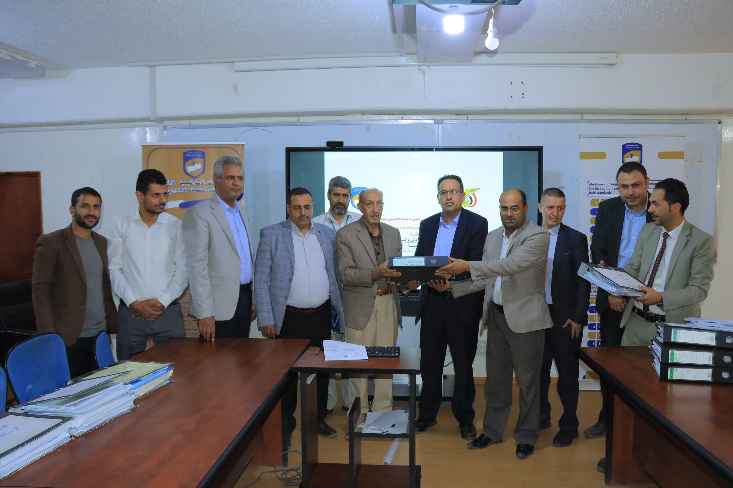 تسلم صباح اليوم مجلس الاعتماد الأكاديمي وضمان جودة التعليم العالي دراسة التقويم الذاتي والملفات التابعة لبرنامج الطب والجراحة بجامعة ٢١ سبتمبر