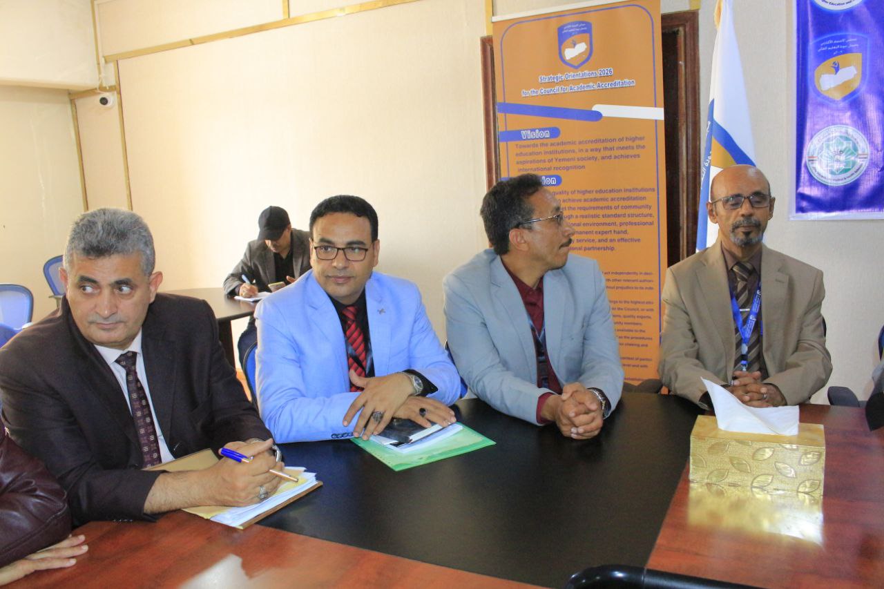 من جانبه أكد رئيس مجلس الإعتماد الأكاديمي الدكتور أحمد الهبوب و الأمين العام الدكتور محمد ضيف الله ، حرص المجلس على تنفيذ المهام الموكلة إليه في تأهيل وتجويد البرامج الأكاديمية بالجامعات اليمنية لتمكينها من الحصول على الاعتماد الوطني البرامجي تحقيقاً لأهداف ورؤية استراتيجية المجلس للوصول إلى الإعتماد الدولي .