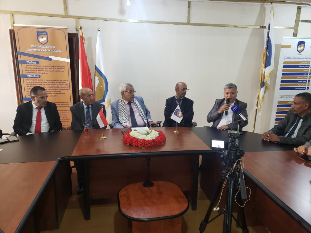 وأثنى على دور قيادة ومنتسبي مجلس الاعتماد الأكاديمي في تقديم الدعم الفني والاستشاري والتعاون مع الجامعة في كل البرنامج للأخذ بيدها وإيصالها إلى الاعتماد الأكاديمي.. منوهاً بجهود السلطة المحلية بالمحافظة في دعم وإسناد الجامعة كونها أحد الصروح العلمية الشامخة.